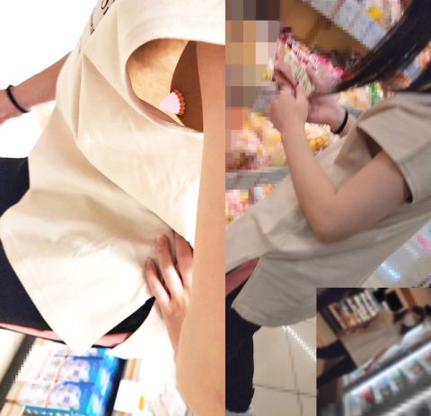 店員胸チラ