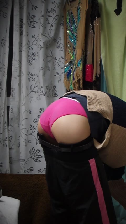 【顔出し】食い込みTバックが激エロな黒髪ロングのデカ尻青チェちゃん♪アナルをヒクヒクさせて挑発する始末(笑)