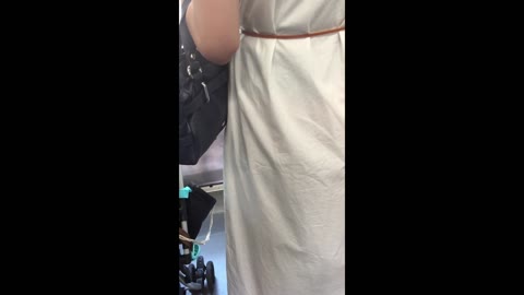 電車胸チラ