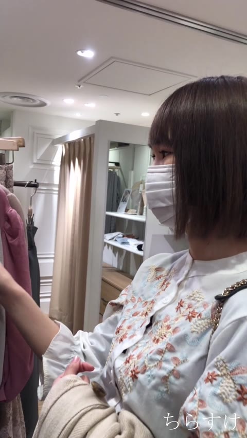 店員胸チラ