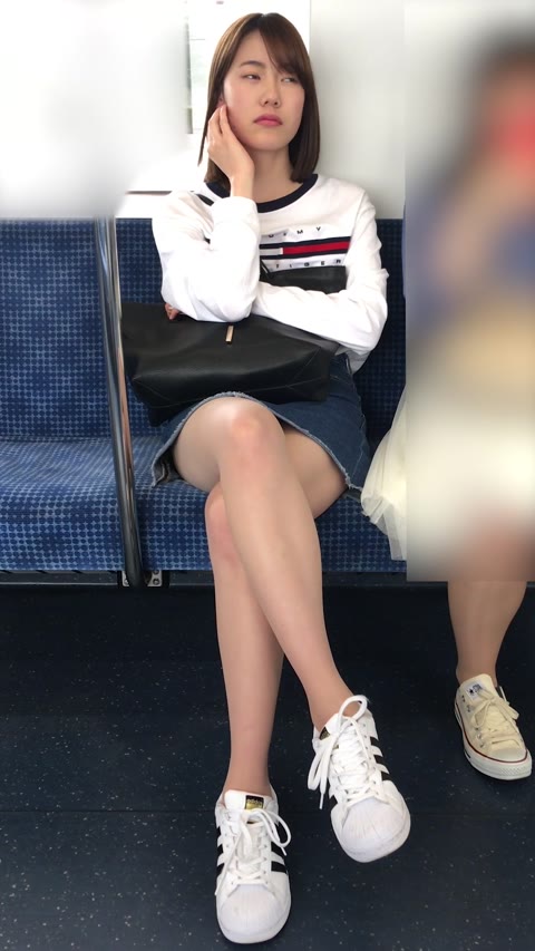 【電車内】美人!生足脚組ナチュラル晒し