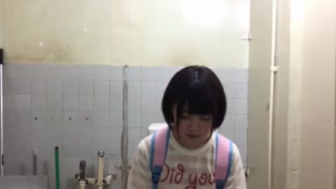 制服Cと人気のないトイレで