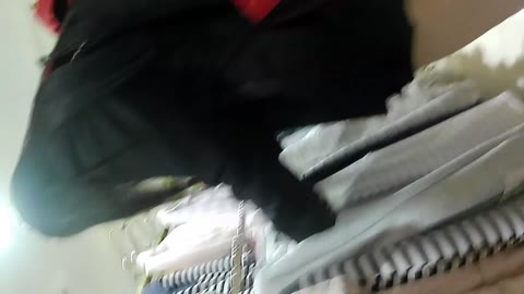 店員胸チラ