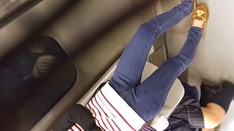 (電車対面)(顔出し)撮りバレ…?偶然…?ボックス席…睡魔に抗い…力尽きて寝落ちしてしまったOL奥さま…無防備なお姿を観察してみ