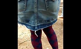 お花見の行列仮設トイレにて。ベージュのダウンを着たお姉さんです。彼女、仕草を抑えようと努めていますが、かなり我慢していますね。残念ながら列が短くて、ありついてしまいました。※1分37秒 MPGファイル※我慢のみ、お漏らし無し。