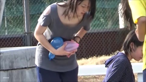公園びしょ濡れ女子大生胸チラ