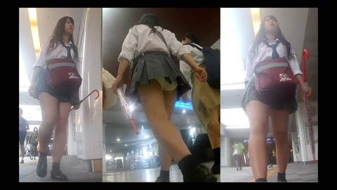 【顔モザイク無】FHD_駅構内で見つけた夏服ミニスカJK!追い撮りからの白のサテンPパンチラ!
