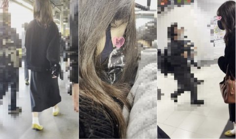 [1:41〜3:36]意外とすんなり警戒される様子なく十分な距離感まで詰め寄ることに成功。触り心地の良さそうなパンパンの尻から責めていきます。一言でいうと「重たそうな尻」パンティの境目みたいなので触っていてわかるんですが、結構食い込んじゃっています。