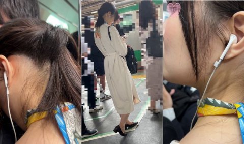 [0:36〜1:40]人がいつもより少なく距離を詰めるのが難しい状況。手の甲を軽くあてながらジリジリと揺れに合わせてすり寄っていきます。