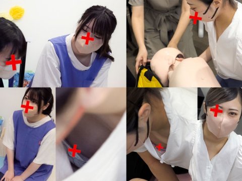 本人たちは不慣れな手つきで講習を受けているので、隙だらけの胸元を撮影することに成功しました。